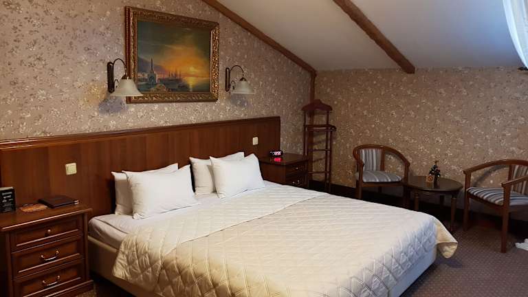 Das Ayvazovsky Hotel befindet sich in einer ausgezeichneten Lage in Odessa, direkt neben dem Philharmonischen Theater und nur wenige Gehminuten von der Deribasovskaya-Straße entfernt. Auch das Opern- und Balletttheater von Odessa ist nicht weit entfernt. Die berühmte Potemkinsche Treppe erreichen Sie nach einem angenehmen 10-minütigen Spaziergang. Die zentrale Lage des Hotels ermöglicht es Ihnen, die wichtigsten Sehenswürdigkeiten der Stadt bequem zu erkunden.