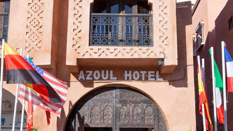 Das Hotel Azoul liegt zentral in Ouarzazate und bietet eine günstige Lage, um die Souks und den Busbahnhof in nur wenigen Gehminuten zu erreichen. Sie haben somit die Möglichkeit, die lebhafte Atmosphäre der Stadt zu erleben und die lokale Kultur zu entdecken. Darüber hinaus können Sie die nahe gelegene Landschaft des Atlasgebirges bewundern, während Sie auf der Dachterrasse des Hotels entspannen.