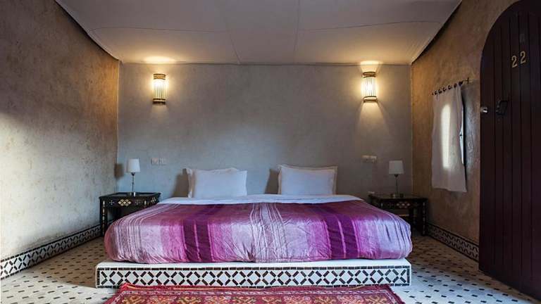 Das Hotel Bab Rimal liegt in der Stadt Foum Zguid in der Provinz Tata. Die Umgebung ist von einem malerischen Palmenhain umgeben und bietet eine idyllische Kulisse für einen erholsamen Aufenthalt. In der Nähe befinden sich zahlreiche Wander- und Trekkingmöglichkeiten, die es Ihnen ermöglichen, die Schönheit der umliegenden Berge und Landschaften zu erkunden.