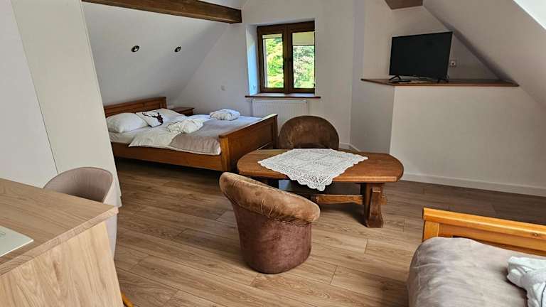 Das Bacówka Biały Jeleń bietet seinen Gästen eine Vielzahl von Freizeitmöglichkeiten. Entspannen Sie im Innenpool oder in der Sauna und lassen Sie den Alltag hinter sich. Für Unterhaltung sorgt ein Billardtisch. In der Umgebung des Hotels können Sie auch Radtouren unternehmen und die schöne Landschaft erkunden.