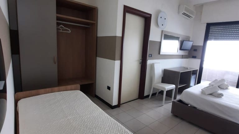 Die Zimmer sind einfach eingerichtet und verfügen über Fliesenböden, Klimaanlage, Heizung und ein eigenes Bad mit Dusche. Zur weiteren Ausstattung gehören ein Schreibtisch, ein TV und in einigen Fällen ein Blick auf das Meer.