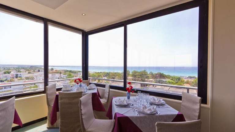 Das Hotel bietet ein reichhaltiges Frühstücksbuffet, das täglich süße italienische Spezialitäten umfasst. Das Restaurant des Hauses serviert traditionell apulische Gerichte. Eine Bar und Snackbar stehen den Gästen ebenfalls zur Verfügung.