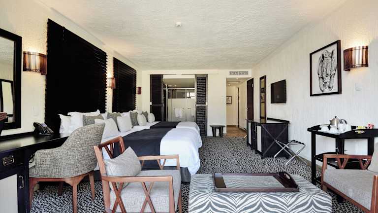 Die elegant eingerichteten Zimmer der Bakubung Bush Lodge bieten Ihnen eine komfortable Unterkunft mit Veranda und Panoramablick auf den Garten. Jedes Zimmer verfügt über einen Flachbild-Sat-TV und kostenfreies WLAN. Das private Badezimmer ist mit einer separaten Badewanne und einer Dusche ausgestattet. Genießen Sie den Komfort und die Annehmlichkeiten, die Ihnen in den stilvollen Zimmern geboten werden.