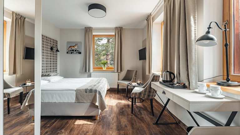 Die Zimmer im Hotel Batory bieten allen Komfort, den Sie für einen angenehmen Aufenthalt benötigen. Jedes Zimmer verfügt über ein eigenes Badezimmer, einen Fernseher, ein Telefon und kostenfreien Internetzugang. Hier können Sie sich nach einem ereignisreichen Tag in den Bergen entspannen und erholen.