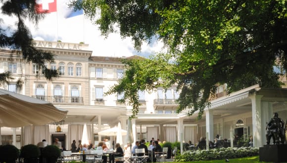 Seine Lage im eigenen Park mit Blick über den See auf die Alpen ist einzigartig. Dabei sind das Bankenzentrum am Paradeplatz und die berühmte Shoppingmeile «Bahnhofstrasse» nur wenige Gehminuten entfernt.