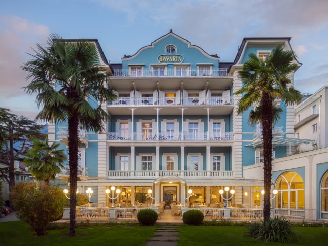 Das Hotel Bavaria stammt aus der Belle Époque, der Glanzzeit Merans und bietet Ihnen auch heute noch das Gefühl herrschaftlichen Wohnens. Hier erwartet Sie stilvolle Eleganz in ungezwungener und freundlicher Wohlfühlatmosphäre. Zwei Löwen am Eingang erinnern an Herzog Karl Theodor von Bayern, der damals jahrelang in der Villa Bavaria wohnte und Meran genauso schätzte wie seine Schwester Kaiserin Sissi. Das Bavaria verfügt über eine neu renovierte Hotellobby mit Hausbar, einen stilvollen und klimatisierten Speisesaal im Jugendstil mit Blick in den Park sowie eine kleine Hausbibliothek mit Tageszeitungen und Wochenmagazinen und einem Internetpoint. Die herrliche und großzügige Sonnenterrasse zum Park bildet das Herzstück: beim Frühstück, beim Mittagessen, nachmittags bei Kaffee und Kuchen oder Eisspezialitäten und ganz besonders zum Abschluß des Tages in den lauen Abendstunden.