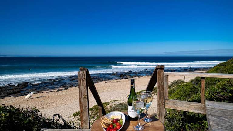 Das Beach Music Hotel befindet sich direkt am berühmten Supertubes Strand in Jeffreys Bay. Dieser Surfspot ist weltbekannt und zieht Surfer aus der ganzen Welt an. Genießen Sie den luxuriösen Komfort eines eigenen Strandes und den spektakulären Meerblick, der sich Ihnen bietet. Die Umgebung bietet viele Aktivitäten wie Surfen, Angeln und Golfspielen. In der Nähe finden Sie auch Restaurants, in denen Sie regionale und internationale Gerichte genießen können.