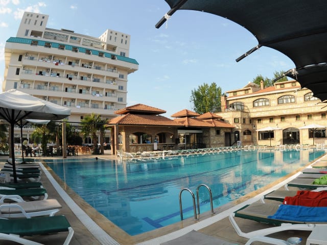 Das Belkon Hotel in Belek ist ein kleines Hotel, das mit seinen Außenpools und seinem Spacenter eine entspannte Atmosphäre bietet. Die geräumigen Zimmer sind mit einem Balkon und kostenlosem WLAN ausgestattet. Das Hotel verfügt über verschiedene Freizeitangebote wie Mini-Fußball, Tischtennis und Billard. Im Spa können Sie sich bei einem Whirlpool, einer Sauna und einem Hamam verwöhnen lassen. Das Restaurant und die Poolbar bieten eine Vielfalt an internationalen Speisen und Snacks. Das Hotel liegt in der Nähe des Strandes und des Flughafens Antalya. Kostenlose Parkplätze stehen zur Verfügung.
