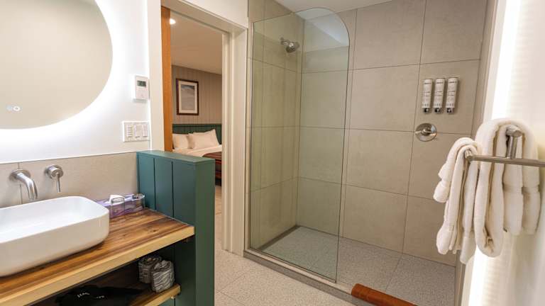 Die Zimmer sind mit einem voll ausgestatteten eigenen Badezimmer ausgestattet, das eine Dusche und kostenlose Pflegeprodukte umfasst.