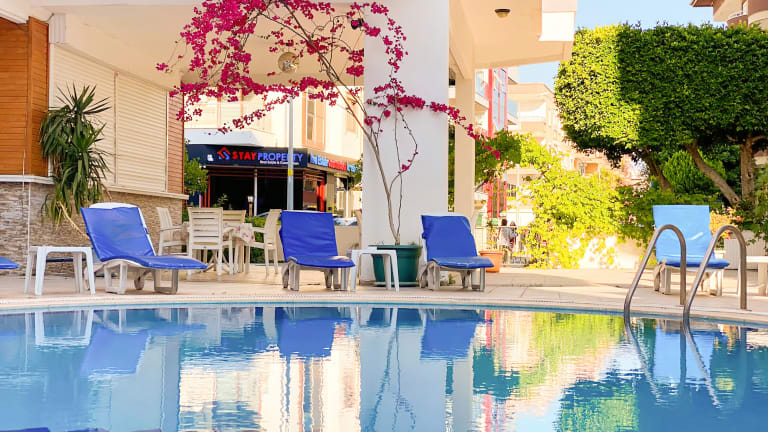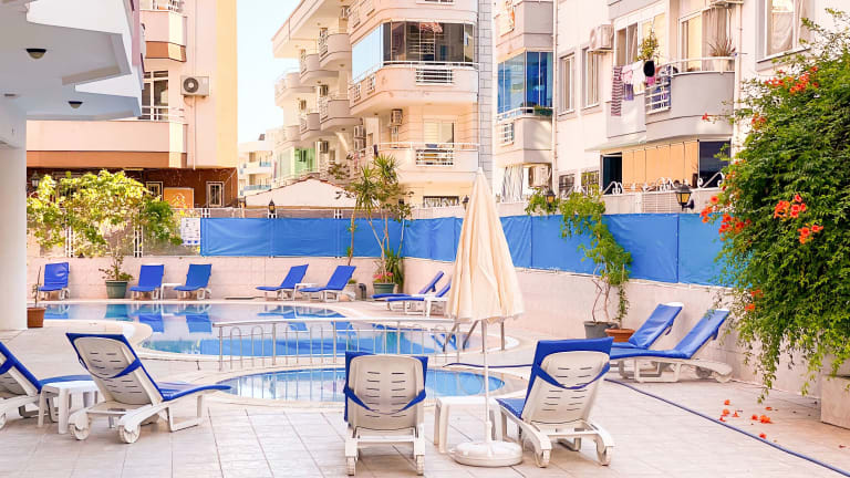 Das Bella Rose Apart Hotel & Economic Apartments in Alanya ist die perfekte Wahl für einen entspannten Strandurlaub. Die geräumigen Apartments bieten allen Komfort, den Sie für einen angenehmen Aufenthalt benötigen, einschließlich einer eigenen Küche und eines Balkons. Der Außenpool und die Sonnenterrasse laden zum Entspannen ein und das Hotelrestaurant verwöhnt Sie mit einer Auswahl an Speisen à la carte und vom Buffet. Die Lage des Hotels in der Nähe des Strandes und der Bushaltestelle machen es zu einem idealen Ausgangspunkt, um die Umgebung zu erkunden.