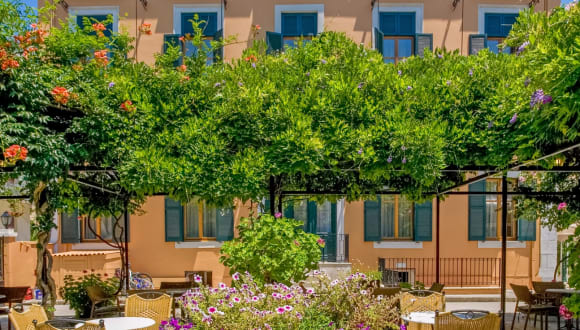 Das Boutique-Hotel Bella Venezia liegt im Herzen von Korfu-Stadt in einem liebevoll restaurierten Bürgerpalast im neoklassizistischen Stil. Das Gebäude wurde im 19. Jahrhundert als Wohnhaus einer der führenden Familien der Insel erbaut und diente im 20. Jahrhundert als Konsulat, als Sitz der Nationalbank von Griechenland und als Mädchengymnasium. 1988 wurde das aprikosenfarbene Gebäude ein Hotel und wurde nach der Serenìsima repùblica benannt. Das Hotel Bella Venezia führt damit die Tradition des ehemaligen Beautiful Venice Hotel fort, das seit 19. Jahrhundert das beste Haus am Platz gewesen war, bevor es im Zweiten Weltkrieg zerstört wurde. 2006 wurde das Hotel erneut renoviert und an die modernen Hotelstandards angepasst.