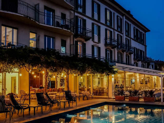 Das Hotel Bellavista in Menaggio bietet eine ideale Lage direkt am Seeufer und überzeugt mit einem Restaurant, einer Bar mit Panoramaterrasse und klassisch eingerichteten Zimmern. Der kostenfreie Außenpool sorgt im Sommer für Erfrischung. Die Anlegestelle am Comer See befindet sich nur 150 m entfernt, von wo aus Fähren nach Varenna und Bellagio ablegen. Das Hotel bietet kostenfreies WLAN, eine private Anlegestelle für Motorboote und eine Garage. Genießen Sie die atemberaubende Aussicht auf den See bei einem Getränk an der Bar oder lassen Sie sich im Restaurant mit internationaler Küche und raffinierten Fischspezialitäten verwöhnen. Ein 18-Loch-Golfplatz ist nur 2 km entfernt und Gäste profitieren von speziellen Preisen.
