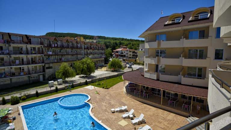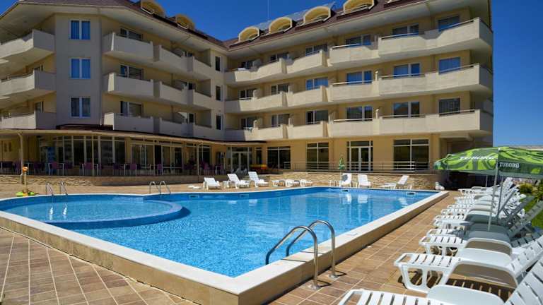 Das Hotel Belle View in Kranevo bietet seinen Gästen eine komfortable Unterkunft mit einem Außenpool und einer Sonnenterrasse. Genießen Sie Ihre Mahlzeiten im hoteleigenen Restaurant und entspannen Sie bei einem Drink an der Bar. WLAN ist in allen Bereichen kostenfrei verfügbar. Das Hotel bietet auch ein Fitnesscenter und eine 24-Stunden-Rezeption. Die Zimmer sind modern eingerichtet und verfügen über Annehmlichkeiten wie einen Flachbild-TV, Klimaanlage, einen Schreibtisch, eine Minibar und einen Balkon mit Gartenmöbeln. Einige Zimmer bieten einen herrlichen Blick auf das Meer, den Pool oder den Garten. Das Hotel Belle View bietet auch Lunchpakete und Gerichte für spezielle Ernährungsbedürfnisse an. Tischtennis steht den Gästen ebenfalls zur Verfügung. Kostenlose Privatparkplätze sind vorhanden und ein Flughafentransfer kann gegen Aufpreis arrangiert werden. Die Unterkunft befindet sich in der Nähe des Naturschutzgebiets Baltata, nur eine kurze Autofahrt vom Goldstrand und 25 km von der Stadt Varna entfernt. Der nächste Flughafen ist der Flughafen Varna, der 28 km entfernt liegt.