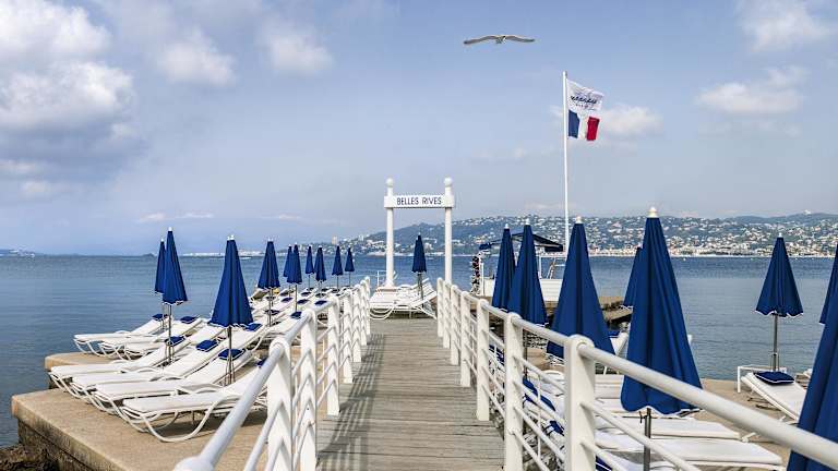 Das Hôtel Belles Rives liegt direkt am Strand in Juan-les-Pins, nur 10 km von Cannes und 23 km von Nizza entfernt. Die Lage des Hotels ermöglicht es den Gästen, die Schönheit der Côte d'Azur zu erkunden und die pulsierende Atmosphäre der umliegenden Städte zu genießen.