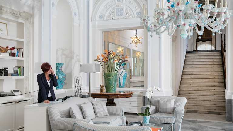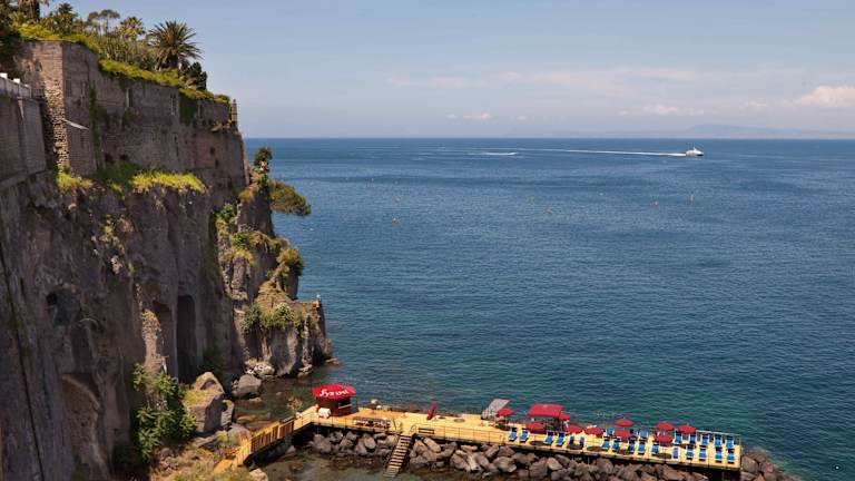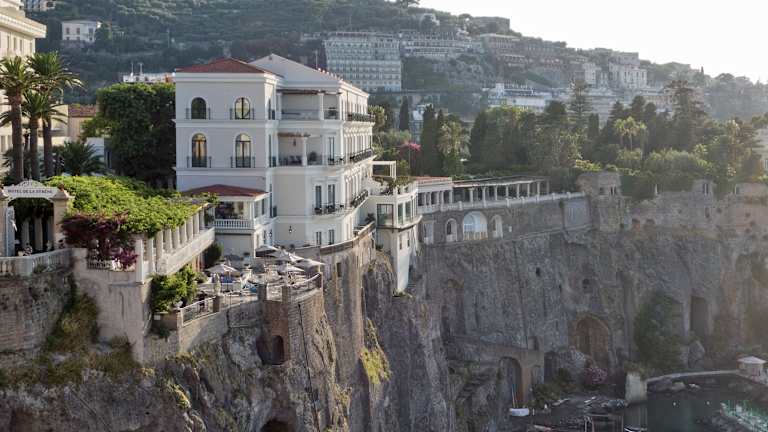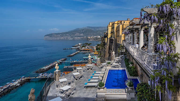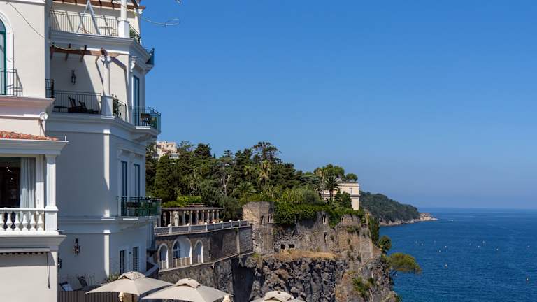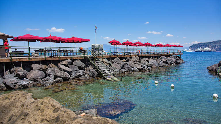 Das Hotel Bellevue Syrene liegt direkt am Strand und bietet eine zentrale Lage in Sorrent. Von hier aus haben Sie einen herrlichen Blick auf das Mittelmeer. Die Umgebung bietet zahlreiche Möglichkeiten zur Erkundung, darunter das historische Zentrum von Sorrento und die beeindruckenden Sehenswürdigkeiten der Region. Der Bahnhof Circumvesuviana ist nur einen kurzen Spaziergang entfernt, von wo aus Sie bequem die Küste entlang nach Positano oder mit dem Zug nach Pompeji oder Neapel gelangen können.