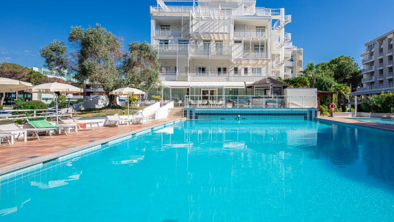 Das Hotel Bembo befindet sich in Bibione und ist nur 100 m vom Strand entfernt. Die Lage des Hotels ermöglicht es Ihnen, die Schönheit des Meeres und den goldenen Sandstrand in unmittelbarer Nähe zu genießen. Die Umgebung ist von grünen Gärten umgeben und bietet eine ruhige und entspannte Atmosphäre.