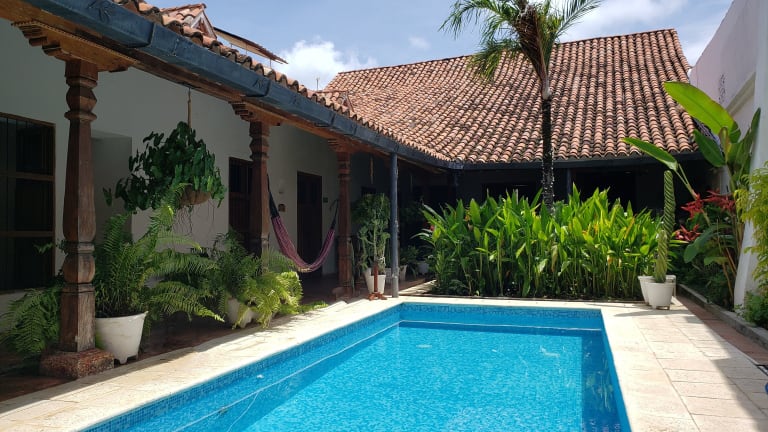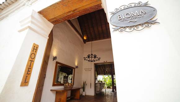 Das Bioma Boutique Hotel in Mompós ist ein wunderbares Hotel im historischen Viertel der Stadt, das geräumige Zimmer und eine Vielzahl von Annehmlichkeiten bietet. Genießen Sie den Whirlpool auf dem Dach mit atemberaubender Aussicht, den Außenpool und die üppigen tropischen Gärten. Die Zimmer sind komfortabel eingerichtet und verfügen über ein eigenes Bad, kostenfreies WLAN und Klimaanlage. Das Restaurant bietet regionale Spezialitäten und die Bar verwöhnt Sie mit exotischen Cocktails. Beginnen Sie Ihren Tag mit einem köstlichen amerikanischen Frühstück. Das Hotel liegt günstig in der Nähe des Flughafens Corozal und ist eine gute Wahl für Reisende, die nach Mompós kommen.