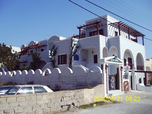 Das Hotel Black Sand Apartments in Kamari bietet seinen Gästen eine ideale Lage im Zentrum des Ortes und direkt am Strand. Die Unterkunft verfügt über 18 Apartments, die mit modernen Annehmlichkeiten ausgestattet sind. Gäste können den Außenpoolbereich mit Whirlpool und die Terrasse mit Sonnenliegen und Sonnenschirmen nutzen. Das Hotel bietet verschiedene gastronomische Einrichtungen, darunter ein Nichtraucherrestaurant, ein Café und eine Bar. Es werden Halb- und Vollpension angeboten, mit kontinentalem Frühstück, Mittag- und Abendessen. Für sportliche Aktivitäten stehen Radfahren/Mountainbiking, Reiten und verschiedene Wassersportarten zur Verfügung. Im Wellnessbereich können Gäste den Whirlpool und verschiedene Spa-Behandlungen genießen.