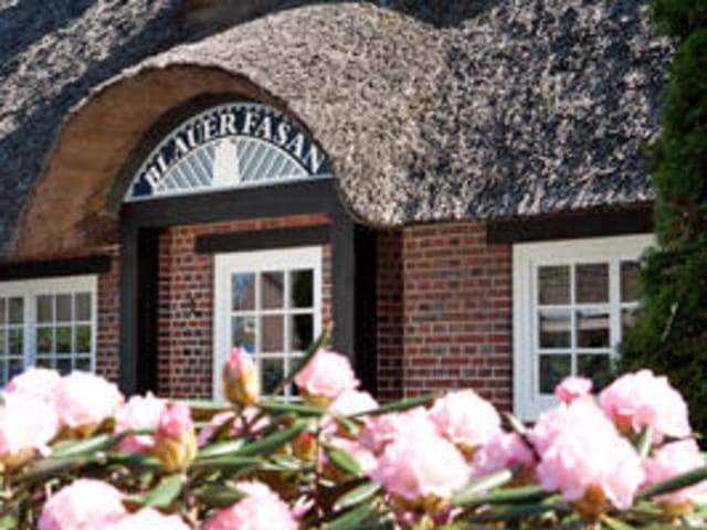 Das Hotel-Restaurant Blauer Fasan - nicht nur etwas für Golfer! In der Blütenstadt Wiesmoor, im Herzen Ostfriesland, liegt unser gemütliches Landhotel unmittelbar in Golfplatznähe. Für Golfer ein gern gesehenes Ziel, denn die 27 Löcher des Golfclub Ostfrieslands versprechen nicht nur Herausforderungen für geübte Spieler, sondern auch Ruhe und Entspannung, Genuss der Natur und die Möglichkeit das Spiel durch unsere Golfschule Blauer Fasan zu verbessern. Der Platz als Augenweide ist aber nicht der einzige Grund, warum sich ein Ausflug zu uns in die Blütenstadt lohnt. Bekannt uns beliebt für unsere abwechslungsreiche Küche bieten wir Ihnen Gaumenfreuden für jeden Geschmack. Saisonalität und eigene Kreationen versprechen Ihnen ein Geschmackserlebnis. Vom Frühstück bis zum Abendessen, die Halbpension als Drei-Gänge-Wahlmenü oder bei Kerzenschein der Genuss eines Vier-Gänge-Feinschmeckermenüs lassen keine Wünsche offen. Unsere Küche ist durchgehend von 12 bis 21 Uhr geöffnet, damit Sie auch am Nachmittag nach einem Ausflug oder nach dem Golfspiel bei uns aus einer Speisekarte auswählen können oder sich von unserem Küchenchef eine Empfehlung aussprechen lassen können. Unser Haus verfügt über 26 Zimmer, alle ausgestattet mit Badezimmer mit Dusche/Wanne und WC, Haartrockner, Handtüchern, begehbarem Kleiderschrank mit kleinem Safe, Minibar, LCD-TV mit Satelittenempfang und kostenfreiem W-Lan in jedem Zimmer. Die Hotelzimmer liegen ruhig gelegen im Garten, es stören keine Hauptverkehrsstraßen, sondern Sie geniessen in vollen Zügen die Ruhe und Erholung. Nur ca. 40 km entfernt zur Küste bieten sich neben Golfspiel oder Erholungsurlaub weitere Freizeitmöglichkeiten an. Strand oder ein Inselbesuch einer unserer einzigartigen Ostfriesischen Inseln macht Ihren Urlaub zu einem unvergesslichen Erlebnis. Wiesmoor - im Herzen Ostfrieslands bietet Ihnen relativ kurze Wege ins Umland, um Altstädte, Sehenswürdigkeiten und größere Städte zu erkunden und besichtigen. Vier Kilometer in den Stadtkern, dort warten Einkaufsmöglichkeiten, Besichtigungen von Moorkolonistenhaus oder Blumenhalle und weitere Freizeitmöglichkeiten auf Sie! Wir freuen uns auf Sie!