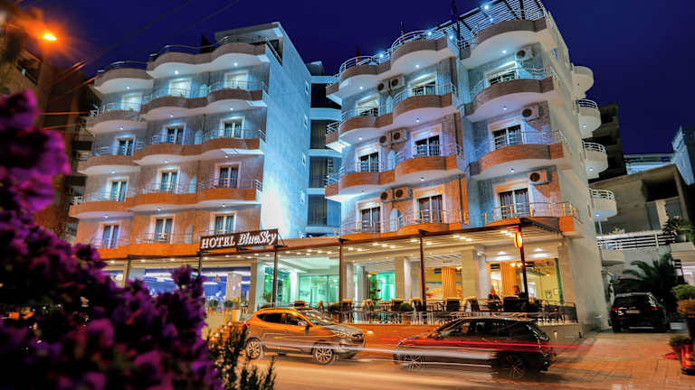 Das Hotel Blue Sky liegt 2 km vom Zentrum von Saranda entfernt und bietet seinen Gästen eine ruhige Lage in der Nähe eines Strandes. Die Umgebung bietet eine atemberaubende Kulisse mit Blick auf das Ionische Meer und die Insel Korfu sowie die umliegenden Berge. Die Burg von Saranda ist 4 km entfernt und der archäologische Park Butrint liegt 15 km entfernt. Ksamil, bekannt für seine schönen Strände, ist nur 10 km entfernt. Der Fährhafen Saranda mit Verbindungen nach Korfu-Stadt ist 4 km entfernt und Himara liegt 55 km entfernt. Busse mit häufigen Verbindungen ins Stadtzentrum halten direkt vor dem Hotel.