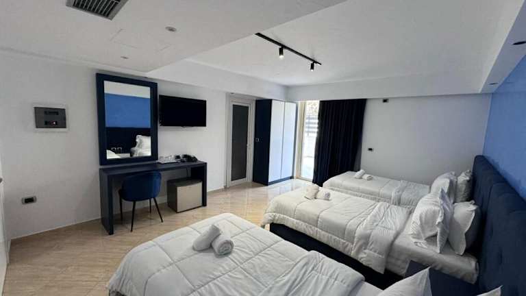 Das Hotel Blue Sky in Saranda bietet seinen Gästen einen atemberaubenden Blick auf das Ionische Meer und die umliegenden Berge. Die Zimmer sind komfortabel eingerichtet und verfügen über einen Balkon. Das Hotel bietet kostenfreies WLAN und ein Restaurant, in dem jeden Morgen ein leckeres Frühstück serviert wird. Die Lage des Hotels ermöglicht es den Gästen, die Stadt Saranda und die umliegenden Sehenswürdigkeiten wie die Burg von Saranda und den archäologischen Park Butrint leicht zu erreichen.