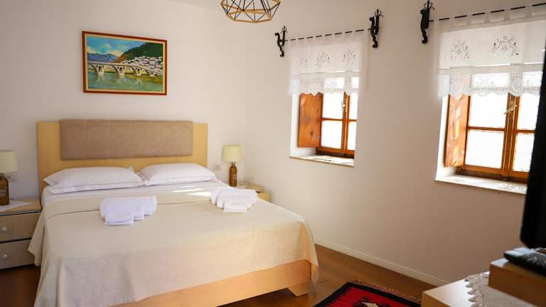 Das Hotel Borklad in Berat bietet seinen Gästen einen angenehmen Aufenthalt mit freundlichem Service und komfortablen Zimmern. Genießen Sie die Annehmlichkeiten wie die Gemeinschaftslounge, die Terrasse und das Restaurant. Das Hotel bietet auch praktische Dienstleistungen wie Flughafentransfers und Fahrradverleih. Die Zimmer sind gut ausgestattet und verfügen über eigenes Badezimmer, kostenfreies WLAN und Kabel-TV. Starten Sie Ihren Tag mit einem leckeren kontinentalen oder vegetarischen Frühstück. Der Flughafen Tirana ist nur 117 km entfernt.