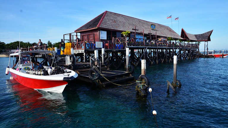 Das Hotel Borneo Divers Mabul Resort ist ein Resort, das klimatisierte, halb freistehende Strandchalet-Zimmer anbietet. Die Unterkunft umfasst ein Restaurant, einen Außenpool sowie verschiedene Bars.