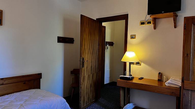 Die Zimmer im Hotel Bosco Verde sind mit einem Kingsize-Bett ausgestattet und können mit Zustellbetten ergänzt werden. Zur Grundausstattung gehören ein Flachbild-TV, ein Schreibtisch, ein Kleiderschrank, ein eigenes Badezimmer mit Bidet und Haartrockner sowie teilweise ein Balkon. Es sind sowohl Familien- als auch Nichtraucherzimmer verfügbar.