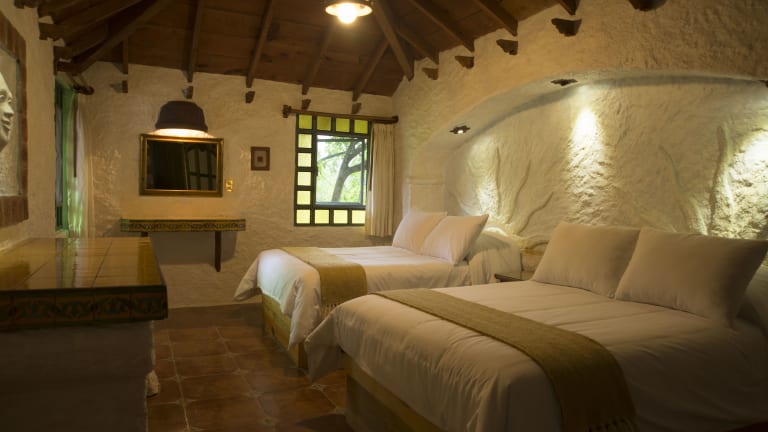 Die Unterkunft im Hotel Bosques del Sol Suites ist in Form einer Villa gestaltet und bietet den Gästen ein komfortables und gemütliches Zuhause. Die Villa verfügt über eine Terrasse, 2 Schlafzimmer und ein Badezimmer mit kostenfreien Pflegeprodukten. Die Einrichtung im Landhausstil mit mexikanischen Details verleiht den Zimmern einen authentischen Charme. Kostenloses WLAN und Heizung sorgen für zusätzlichen Komfort während des Aufenthalts. Ein Kaffeeservice zum Zimmer rundet das Angebot ab.