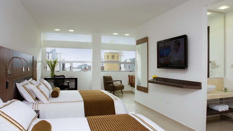 Das San Simon Hotel liegt in Pereira und bietet eine ideale Ausgangslage für die Erkundung der Umgebung. Direkt gegenüber dem Hotel befindet sich die imposante Skulptur El Bolivar Desnudo und die berühmten heißen Quellen in Santa Rosa sind nur eine kurze Fahrt entfernt. Gäste können die Privatparkplätze des Hotels kostenlos nutzen und somit bequem mit dem Auto anreisen.