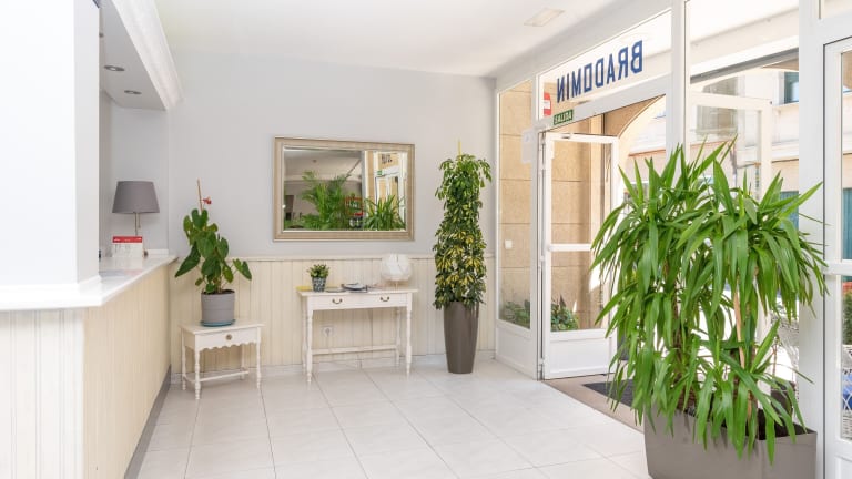 Das Hotel Bradomín befindet sich im Zentrum von Vilanova de Arousa, nur 10 Gehminuten vom Strand entfernt. Die zentrale Lage ermöglicht es Ihnen, die umliegenden Geschäfte, Restaurants und Bars bequem zu erreichen. Der beliebte Ferienort Sanxenxo ist nur 30 Autominuten entfernt, während Sie nach etwa 45 Fahrminuten Santiago de Compostela erreichen.