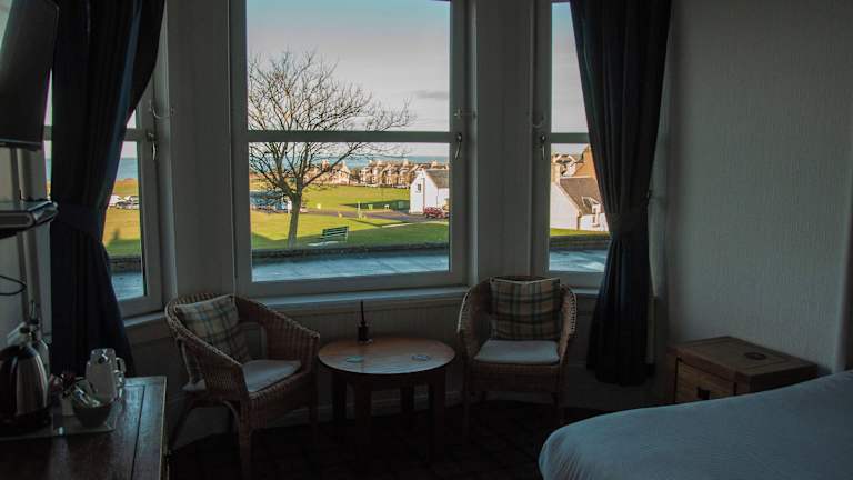 Das hoteleigene Restaurant Sea View serviert frische Meeresfrüchte, Steaks und traditionelle schottische Küche. Hier können Sie köstliche Gerichte genießen und den atemberaubenden Meerblick gleichzeitig bewundern. Die preisgekrönte Bar Bandstand Beer and Musical Festival bietet eine Auswahl an Real Ales und war Finalist des schottischen Hospitality-Preises Scottish Festival of the Year 2016 und des CAMRA District Pub of the Year 2016.