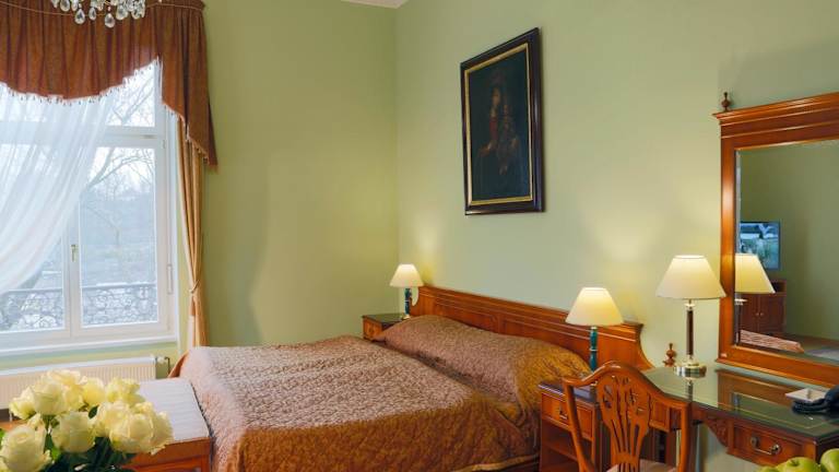 Die Zimmer im Hotel Bristol Vila Tereza sind geräumig und bieten modernen Komfort. Kostenloser Internetzugang ist in allen Zimmern verfügbar, so dass Sie mit Freunden und Familie in Verbindung bleiben können. Jedes Zimmer bietet auch einen atemberaubenden Blick auf die Karlsbader Kolonnaden, die einen Hauch von Eleganz und Romantik verleihen. Die Zimmer sind schallisoliert, um eine ruhige und erholsame Atmosphäre zu gewährleisten. Zu den weiteren Annehmlichkeiten gehören Kabel-TV, eine Minibar und ein Badezimmer mit einem Haartrockner.