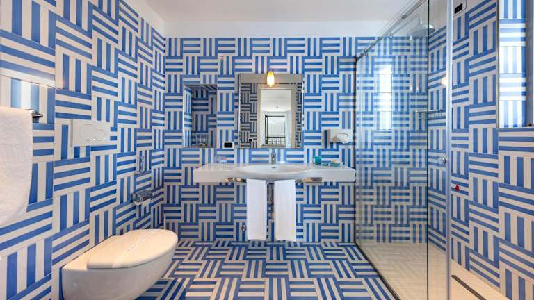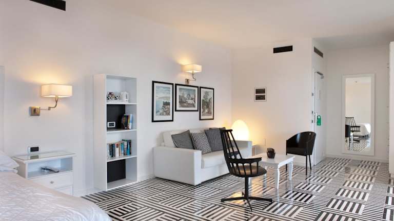 Das Hotel bietet 12 Suiten, 7 Einzelzimmer und 70 Doppelzimmer. Die Zimmer sind geräumig und verfügen über Sat-TV, Klimaanlage und teilweise einen Balkon mit Meerblick. Die Junior Suiten bieten zusätzlich großzügige Terrassen und teilweise einen kleinen Whirlpool.