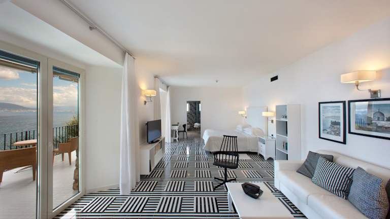 Das Hotel befindet sich in einer Panoramalage oberhalb von Sorrent und bietet einen atemberaubenden Blick auf die Bucht von Neapel. Das Stadtzentrum und öffentliche Verkehrsmittel sind in der Nähe und können bequem erreicht werden.