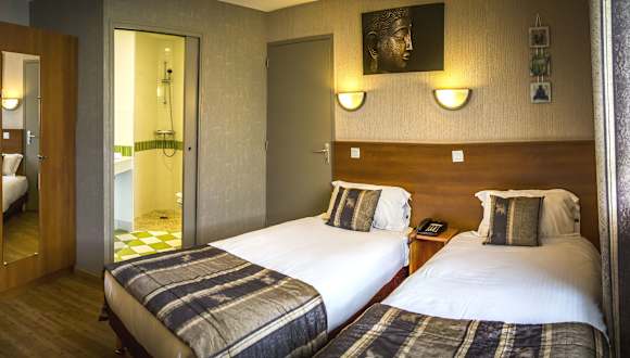Die Zimmer im Brit Hotel Azur sind komfortabel und modern eingerichtet. Jedes Zimmer verfügt über ein eigenes Bad und einen Flachbild-TV mit Sat-Empfang. Hier können Sie sich nach einem langen Tag entspannen und ausruhen. Kostenloses WLAN steht Ihnen in allen Zimmern zur Verfügung, so dass Sie immer mit der Welt verbunden bleiben können.