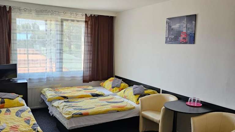 Das Hotel Buly bietet Ihnen eine fantastische Auswahl an Sporteinrichtungen direkt vor der Tür. Egal, ob Sie Eishockey, Tennis, Schwimmen, Bowling oder Squash mögen, hier finden Sie alles, was das Sportlerherz begehrt. Wenn Sie die Umgebung erkunden möchten, können Sie einen kurzen Spaziergang ins Zentrum von Písek unternehmen, wo Sie historische Sehenswürdigkeiten wie die Burg Písek entdecken können. Der öffentliche Nahverkehr ist gut erreichbar, so dass Sie die Umgebung problemlos erkunden können.