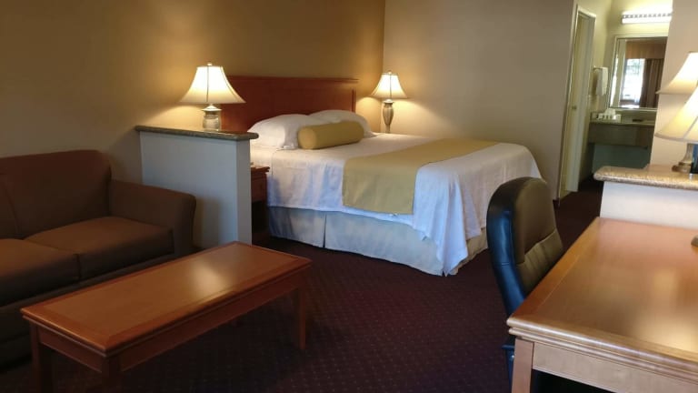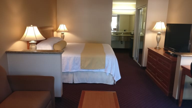 Die Zimmer im Burbank Inn and Suites sind modern und komfortabel eingerichtet und bieten alles, was Sie für einen angenehmen Aufenthalt benötigen. Jedes Zimmer verfügt über einen geräumigen Sitzbereich, einen Minikühlschrank und eine Kaffeemaschine. Die Flachbild-Kabel-TVs mit einer Größe von 42 Zoll sorgen für beste Unterhaltung. Darüber hinaus sind die Zimmer mit einem Haartrockner und einem Bügeleisen/-brett ausgestattet, um Ihren Aufenthalt so bequem wie möglich zu gestalten.