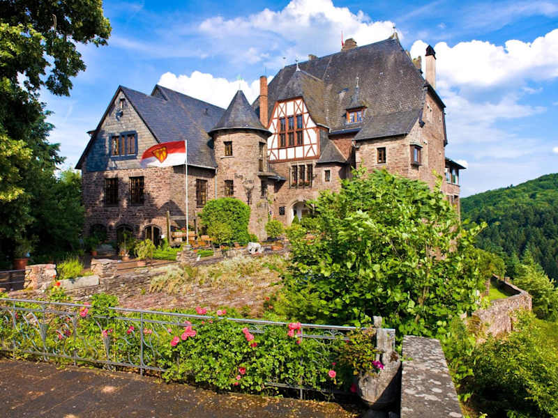 Das Hotel Burg Arras liegt in dem charmanten Dorf Alf und ist von der malerischen Landschaft der Mosel umgeben. In der Nähe gibt es viele Sehenswürdigkeiten wie die Reichsburg Cochem, die nur 27 km entfernt liegt. Die Umgebung bietet auch zahlreiche Möglichkeiten zum Radfahren und erkunden der Natur. Der Flughafen Frankfurt-Hahn ist mit dem Auto in kurzer Zeit erreichbar.