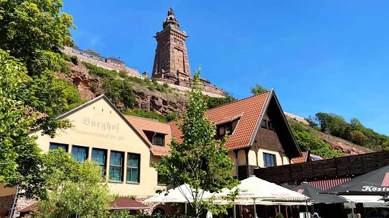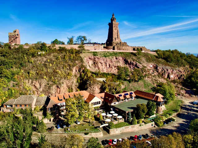 Der Burghof Kyffhäuser in Bad Frankenhausen bietet eine charmante Unterkunft in einem historischen Gebäude am Fuße des Kyffhäuser-Denkmals. Die farbenfroh eingerichteten Zimmer mit freiliegenden Holzbalken vermitteln den Charme des Landhausstils. Das Restaurant serviert klassische deutsche und thüringische Spezialitäten, während Sie in den Sommermonaten im Freien grillen können. Die Umgebung eignet sich ideal zum Wandern, Radfahren und Angeln.
