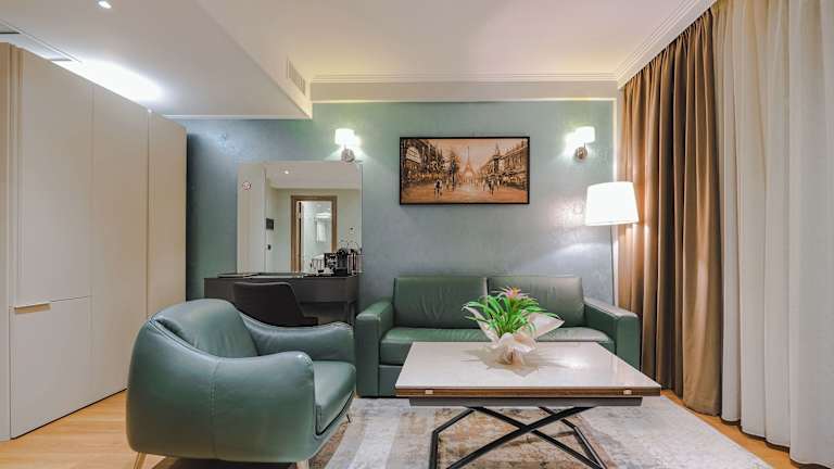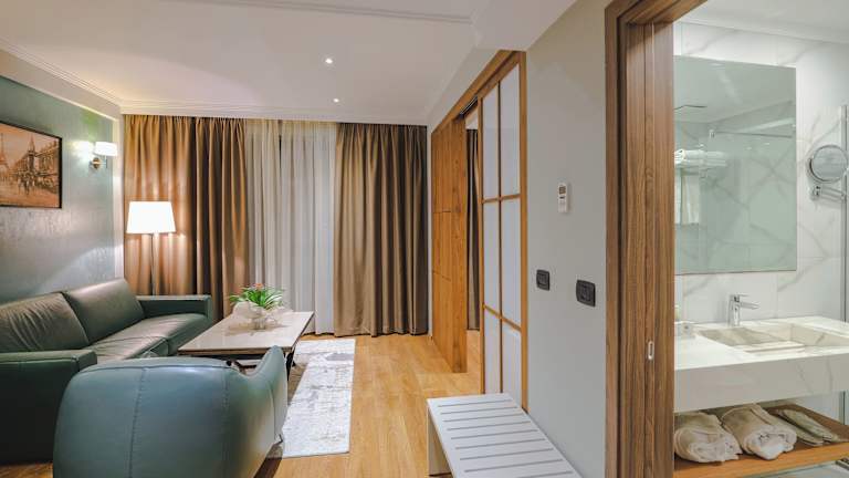 Die Zimmer sind mit Teppichböden, Klimaanlage und zentral steuerbarer Heizung ausgestattet. Jedes Zimmer verfügt über Balkon oder Terrasse mit Stadtblick. Zu den Annehmlichkeiten zählen ein Doppel- oder Kingsize-Bett, Safe, Minibar, Schreibtisch, Flachbildfernseher mit Satellitenempfang sowie kostenfreies WLAN. Im Badezimmer sind eine Badewanne, Bademäntel, Haartrockner und Kosmetikartikel vorhanden. Einige Zimmer sind barrierefrei.