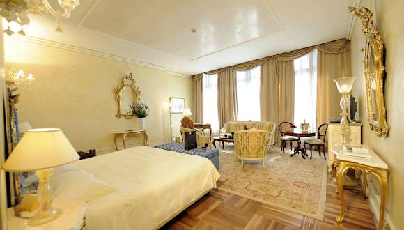 Das Hotel Ca' Sagredo in Venedig ist ein elegantes Gebäude aus dem 14. Jahrhundert, das mit seiner typisch venezianischen, aufwendigen Gestaltung beeindruckt. Die Zimmer sind mit antikem Mobiliar und originalen Kunstwerken ausgestattet und bieten einen herrlichen Blick auf den Canal Grande oder die Dächer von Venedig. Die Lage des Hotels ist ruhig und dennoch zentral, nur wenige Gehminuten von der Rialto-Brücke und dem Markusdom entfernt. Genießen Sie die beeindruckende Kunstsammlung des Hotels und lassen Sie sich von der Schönheit der venezianischen Meisterwerke verzaubern.