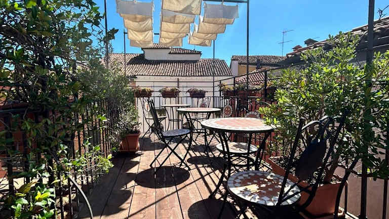Das Ca 'San Trovaso - 6 Rooms ist eine charmante Unterkunft im Stadtteil Dorsoduro in Venedig. Hier können Sie den typisch venezianischen Flair in gemütlichen Zimmern genießen und die atemberaubende Aussicht von der Dachterrasse auf die Stadt bewundern. Das Hotel bietet kostenfreies WLAN, ein leckeres italienisches Frühstück und einen Gemeinschaftsraum mit Tee- und Kaffeezubehör. Die Lage des Hotels ermöglicht es Ihnen, bequem die öffentlichen Verkehrsmittel zu erreichen und die Sehenswürdigkeiten wie das Guggenheim Museum, die Galerie Accademia und das Museum Punta Dogana zu Fuß zu erkunden.