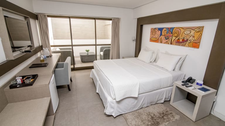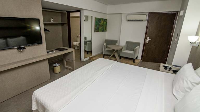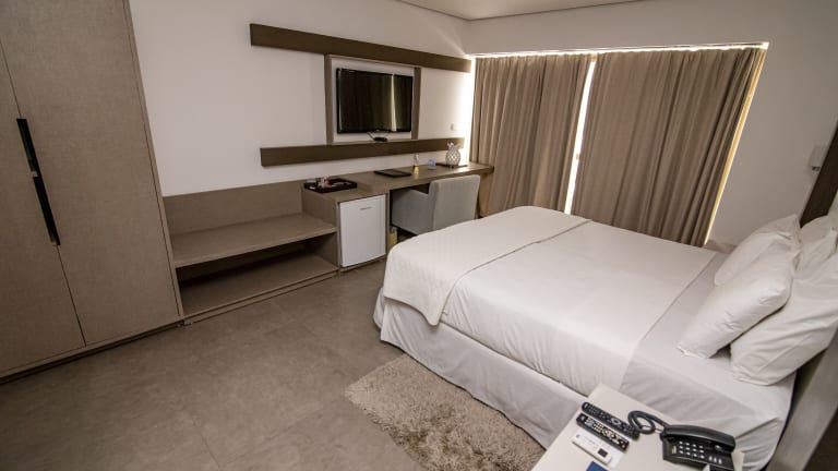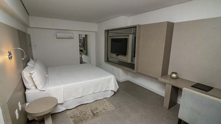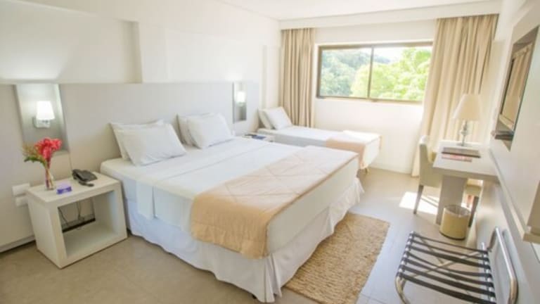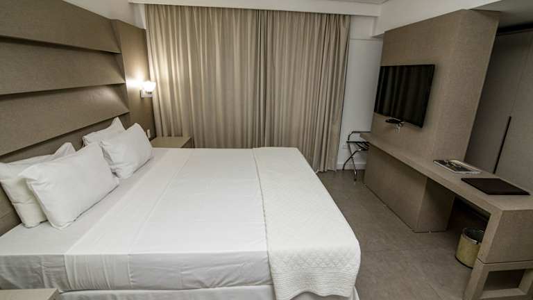 Das Hotel Cabo Branco Atlântico verfügt über 96 Zimmer, die auf 4 Etagen verteilt sind. Die Zimmer sind komfortabel eingerichtet und bieten Annehmlichkeiten wie einen Safe, eine Minibar und einen Schreibtisch. Zur Ausstattung gehören auch ein TV-Gerät mit Kabelempfang und kostenfreies WLAN. Die Badezimmer sind mit einer Dusche, kostenlosen Pflegeprodukten und einem Haartrockner ausgestattet. Rollstuhlgerechte Zimmer sind auf Anfrage verfügbar.