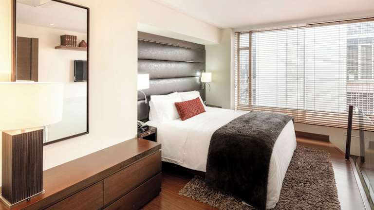 Das Hotel bietet 39 Suiten sowie Einzel- und Doppelzimmer auf 9 Etagen. Die Zimmer sind modern und komfortabel eingerichtet und verfügen über eine Klimaanlage, eine individuell regulierbare Heizung, einen Safe und eine Minibar. Eine komplett ausgestattete Kochnische mit Kühlschrank, Herd, Mikrowelle und Kaffeemaschine ist ebenfalls vorhanden. Zur weiteren Ausstattung gehören ein Schreibtisch, ein Telefon, ein TV-Gerät mit Satelliten- / Kabelempfang, ein Radio, eine Stereoanlage, ein DVD-Player und kostenfreies WLAN. Im Badezimmer finden die Gäste eine Dusche, eine Badewanne, einen Haartrockner und kostenfreie Kosmetikartikel. Rollstuhlgerechte Zimmer sind auf Anfrage verfügbar.