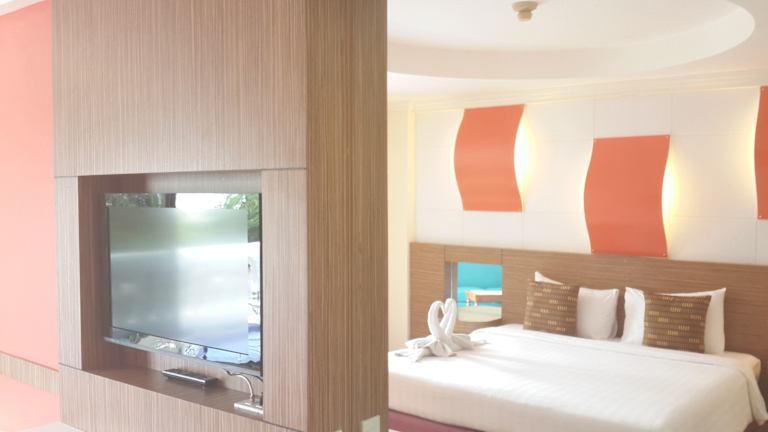 Das Hotel verfügt über 220 Zimmer, die in warmen Farben gehalten und mit Holzmöbeln, einem Flachbild-TV, einem Safe und einem Kühlschrank ausgestattet sind. Jedes Zimmer bietet zudem einen Sitzbereich und entweder einen Pool- oder Stadtblick. Das private Badezimmer ist mit einer Dusche, kostenlosen Pflegeprodukten und Handtüchern ausgestattet.