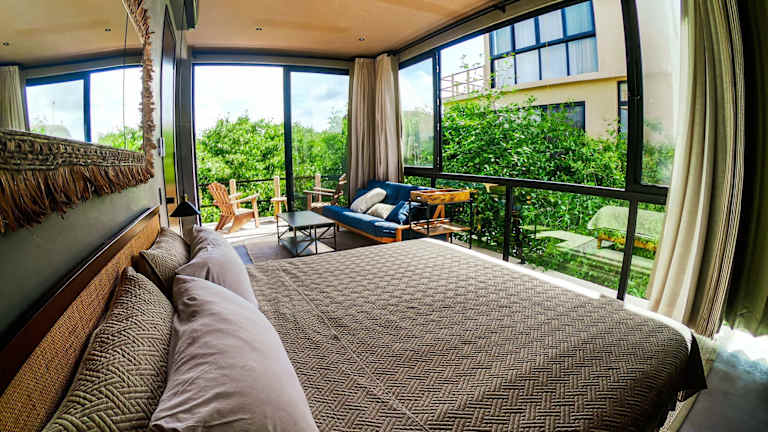 Die Unterkunft befindet sich in Tulum, nur 10 Meter vom Südstrand entfernt. In der Nähe liegen die Archäologische Stätte Tulum, etwa 10 km entfernt, und der Parque Nacional Tulum, der 3,5 km entfernt gelegen ist. Der nächste Flughafen, Flughafen Tulum, ist 44 km von der Unterkunft entfernt.