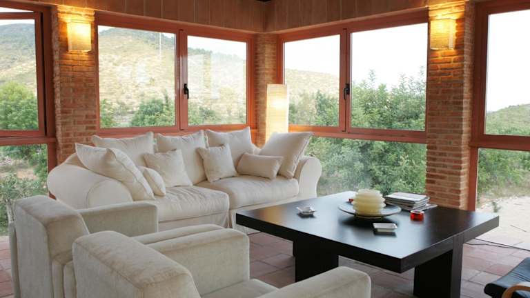 Die Zimmer im Hotel Cal Naudi sind im Landhausstil gestaltet und bieten eine gemütliche Atmosphäre. Jedes Zimmer verfügt über eine große eigene Terrasse, auf der Sie den Blick auf das Meer und die umliegende Landschaft genießen können. Zur weiteren Ausstattung gehören ein komfortabler Sitzbereich mit Sat-TV sowie ein eigenes Badezimmer mit Haartrockner, Bademantel und Hausschuhen.