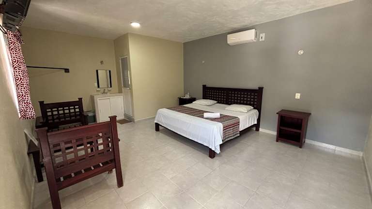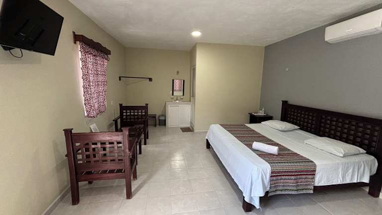 Die Zimmer im HOTEL VILLA CALAKMUL sind komfortabel und gemütlich eingerichtet. Sie verfügen über einen Balkon, auf dem Sie die frische Luft und die Aussicht genießen können. Jedes Zimmer bietet ein eigenes Bad mit kostenfreien Pflegeprodukten, einen Flachbild-TV und Klimaanlage. Einige Zimmer verfügen auch über einen separaten Sitzbereich, der zusätzlichen Komfort bietet.