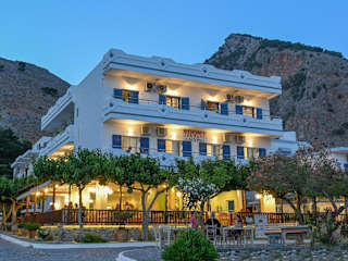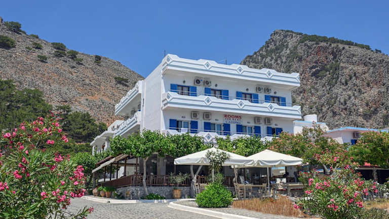 Das Calypso Hotel befindet sich im idyllischen Dorf Agia Roumeli, nur 20 Meter vom Strand entfernt. Von Ihrem Zimmer aus haben Sie einen atemberaubenden Blick auf das Libysche Meer. Das Hotel liegt in der Nähe der Dörfer Sfakia und Loutro, die bequem mit dem Boot erreicht werden können. Die Lage des Hotels bietet Ihnen die Möglichkeit, die Schönheit der Umgebung zu erkunden und Ausflüge in die Natur zu unternehmen. Chania ist etwa 75 km entfernt und kann mit dem Auto erreicht werden. Kostenlose Parkplätze stehen zur Verfügung.